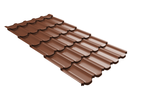 Металлочерепица квинта плюс Grand Line c 3D резом 0,45 Drap ST RAL 8004 терракота